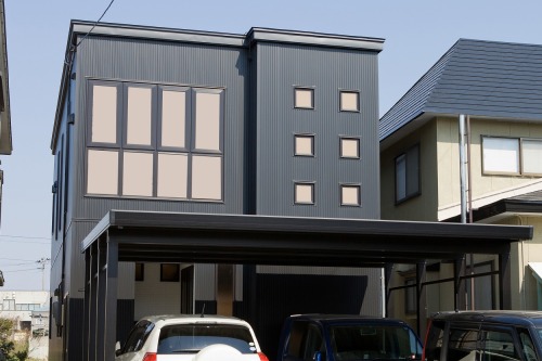 施主様のこだわりで、外観から内観すべての色を黒と白で統一しました。